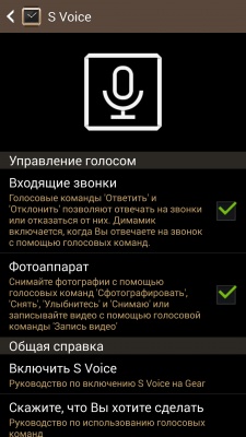 Также стоит отметить и то, что часы позволяют видеть уведомления (отображается почта, SMS и пр.). Кроме того, в меню предусмотрено управление S Voice. Кстати, важная особенность последнего - работа возможна только при хорошей слышимости, в шумном помещении у вас ничего не получится.