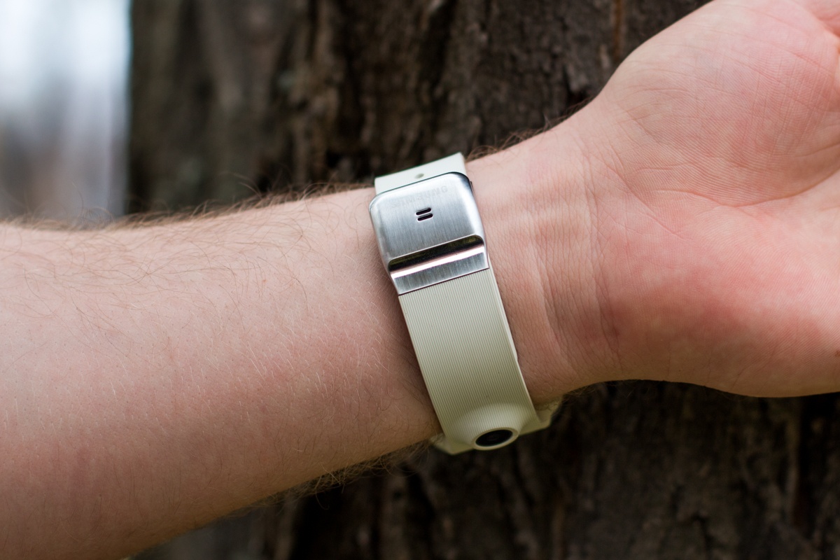 Еще один функциональный элемент - внешний динамик. Вынесен он на защелку крепления. Если вдруг вы захотите позвонить посредством часов, будьте уверены, громкости достаточно для того, чтобы вас услышали все окружающие.