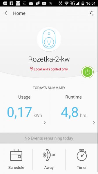 Обзор умных розеток TP-Link: HS100 и HS110 с функцией подсчета энергииСмартфон уже давно стал центром, который объединил вокруг себя основные коммуникации человека. Следующим этапом станет завоевание им роли главного устройства в доме. Какое место в этой стратегии компания TP-Link выделила умным розеткам HS100 и HS110, рассмотрим в обзоре. ФункцииНачнем с возможностей, которыми производитель наделил обозреваемые устройства. Самая главная из них - возможность удаленного управления розеткой TP-Link HS100 и HS110 со смартфона. Реализован доступ через мобильное приложение «Kasa», которое можно установить на смартфон под управлением операционных систем Android или iOS. Причем подключаться к умной розетке можно, находясь в одной Wi-Fi сети с ней, а также вне зоны ее покрытия. Во втором случае главное, чтобы был доступ к Интернет. Программа понимает, что это именно ваше устройство, так как для удаленного доступа необходимо завести собственный аккаунт в облачном сервисе TP-Link Cloud и подтвердить введенный при регистрации e-mail адрес переходом по ссылке, которую вышлют в письме. Так что до момента полного сброса настроек никто другой доступа через розетку к вашему утюгу или телевизору не получит. Данные хранятся в надежном месте на серверах в Европе. Все функции TP-Link HS100 и HS110 реализуются через мобильную программу. Уточним, что данные передаются с розетки сначала в маршрутизатор, потом в облако, а только потом в программу «Kasa». Настройка и подключение нового умного гаджета из тех, которые поддерживаются приложением, проста и понятна. Инструкция на экране смартфона и руководство пользователя из комплекта поставки будут полезны и информативны в этом процессе. Последовательность можно отследить на скриншотах ниже. Разберемся с возможностями удаленного управления розетками детальнее. Во-первых, HS100 и HS110 можно включать и выключать по расписанию. Вместе с ними будет активироваться или отключаться сопряженное устройство. Например, можно управлять обогревателем, который в уже наступивший осенне-зимний период является одним из самых популярных бытовых приборов. Также можно настроить управление освещением торшера, ночника или светильника, который включается в розетку. Нужно сказать, что умные выключатели TP-Link станут следующими в списке устройств для умного дома, которые представят в нашей стране. Помимо них мы еще увидим умные лампочки и беспроводные маршрутизаторы, ориентированные на создание инфраструктуры под интеллектуальное удаленное управление. Напомним, что ранее наш портал уже тестировал облачную камеру TP-Link NC220, которую можно считать первой в списке умных гаджетов с возможностью контроля со смартфона. Функция «Включение по расписанию» интересна еще и со стороны безопасности, ведь так можно имитировать ваше присутствие в квартире или доме просто играясь нажатием сенсорной кнопки на экране смартфона. Разработчики вынесли ее отдельной иконкой и назвали режим «нет дома» (Away). Конечно, вручную ничего делать не нужно, достаточно запрограммировать нужный сценарий. Несколько предустановленных вариантов развития событий предлагает сам производитель. Их можно найти во вкладке «Сценарии» приложения «Kasa». «Отключения по таймеру» - третья функция, которая имеет немного общего с работой по расписанию. Ее возможности понятны каждому. Полезна она будет тем, кто не очен