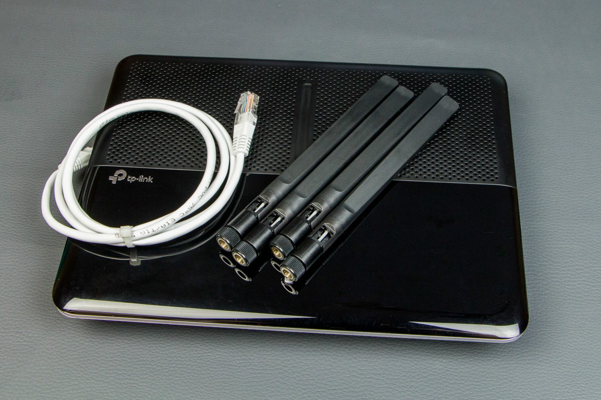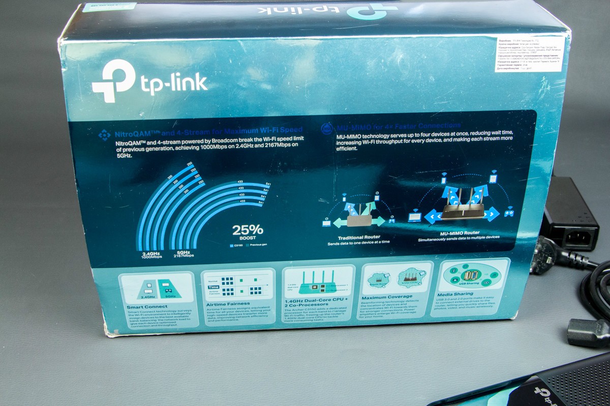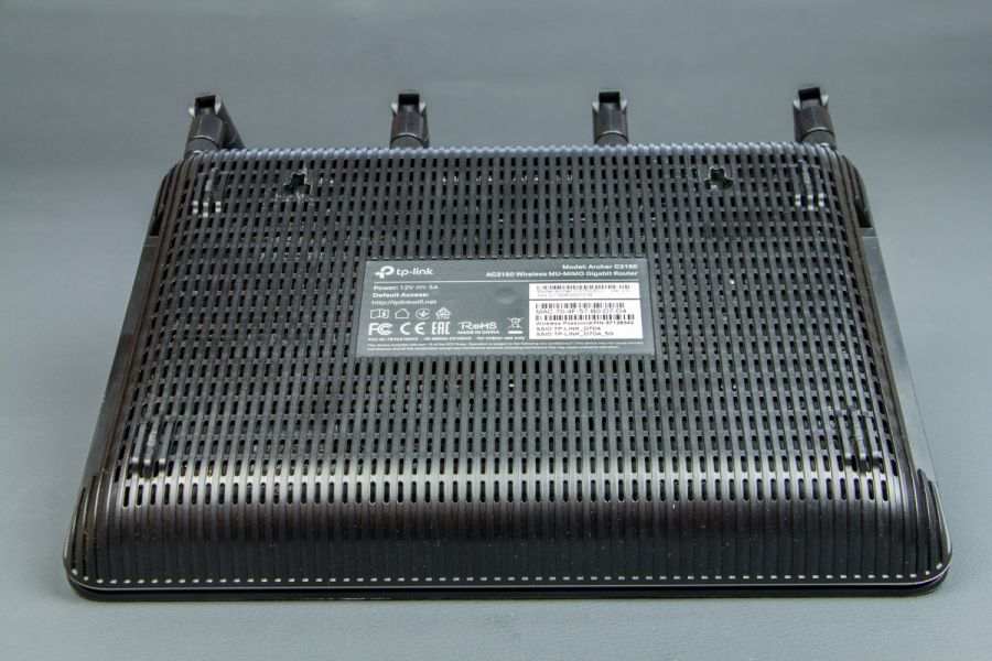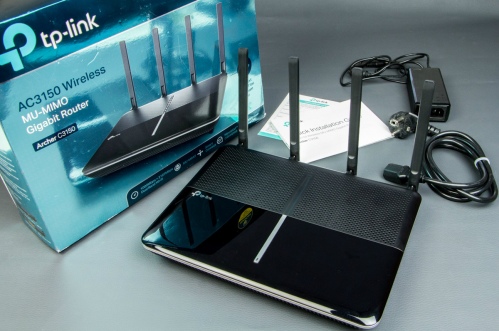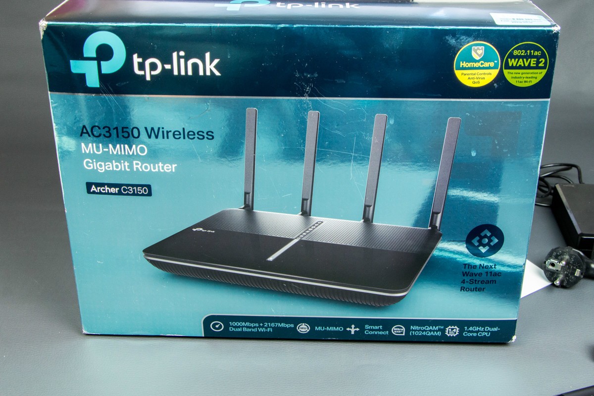 Внешность привлекает, даже большая решетка на верхней крышке седлана красиво. Подсветка диода на верхней кнопке белого цвета, а индикаторов состояния работы голубоватого. Слева на корпусе разместили кнопки ВКЛ/ВЫКЛ Wi-Fi, сброса настроек, WPS, а также по одному порту USB 2.0 и USB 3.0. Справа пусто. На тыльном торце между разъемами для подключения антенн находятся: кнопка включения/выключения, разъем питания, один WAN и четыре LAN порта. Последние рассчитаны на скорость в 1 Гбит/с. Предусмотрено крепление маршрутизатора на стену. Некоторые производители в дорогих моделях для домашнего пользования забывают об этом, но не TP-Link. Ножки с прорезиненной вставкой, приподымающие роутер над поверхностью, также присутствуют. Габариты 263,8х197,8х37,3 мм. Сборка выполнена без нареканий. Комплектация Напоследок о комплекте поставки. Модель Archer C3150 дополнили 4-мя съемными антеннами, блоком питания на 60 Вт (12В/5А), а также белым Ethernet кабелем, документацией по быстрому запуску и гарантийным талоном. Коробку можно увидеть на фото ниже, она яркая и информативная. Выводы Покупая Archer C3150 ver.2 с суммарной скоростью передачи данных до 3167 Мбит/с по каналам 2,4 ГГц и 5 ГГц пользователь, как минимум, выигрывает втройне. Он получает очень быстрый Wi-Fi, гигабитный LAN и USB 3.0. Дополняет эти возможности технология MU-MIMO, которая позволяет работать с несколькими устройствами одновременно и достигать при этом в 4 раза более высокой скорости в сравнении с обычными AC роутерами. Если бы у нас была награда за технологичность, мы бы ее без раздумий дали роутеру TP-Link Archer C3150 ver.2. Но «Лучший выбор» также будет к месту, так как придраться к устройству ни по одному из параметров не получилось, а ценник можно считать обоснованным и конкурентным.