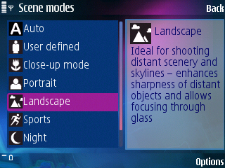 Интерфейс съемки знаком нам по Nokia N73 - ничего принципиально нового здесь нет, но кое-что обновлено и добавлено.