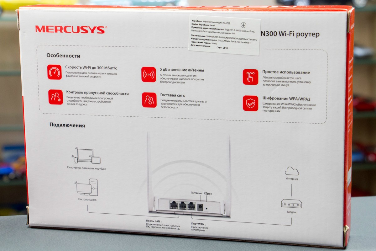 В целом, несмотря на бюджетность, возможности настроек позволяют использовать роутер не только дома, но и в рамках офиса. Комплект поставки Напоследок о комплектации. Маршрутизатор упаковали в яркую коробку из плотного картона. Внутри адаптер питания 5В/0,6А, LAN-кабель, руководство по быстрому подключению и гарантийный талон. Комплект достаточный, чтобы начать работу сразу. Вывод Mercusys MW301R приятно удивил простотой настройки и стабильностью работы, а также хорошей подборкой материалов при очень демократичном ценнике. Реальных конкурентов с двумя антеннами у обозреваемой модели нет. Аналог по цене есть, но максимальную скорость в 300 Мбит/с он не предлагает, только 150 Мбит/с. По факту Wi-Fi роутер MW301R просто оправдал возложенные на него надежды. Ни больше, ни меньше. Так, что в качестве устройства для небольшого помещения с целью создать или разделить беспроводную сеть на отдельные сегменты, доступнее варианта нет. Если в маршрутизаторе не нужны USB порты, гигабитные порты и другие излишества, тогда Smartphone.ua рекомендует к покупке!