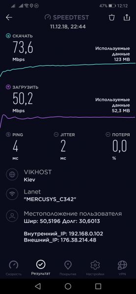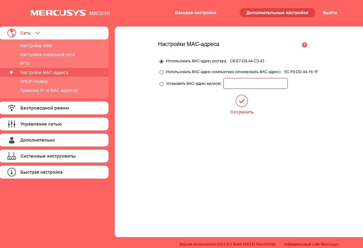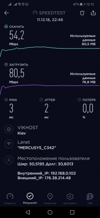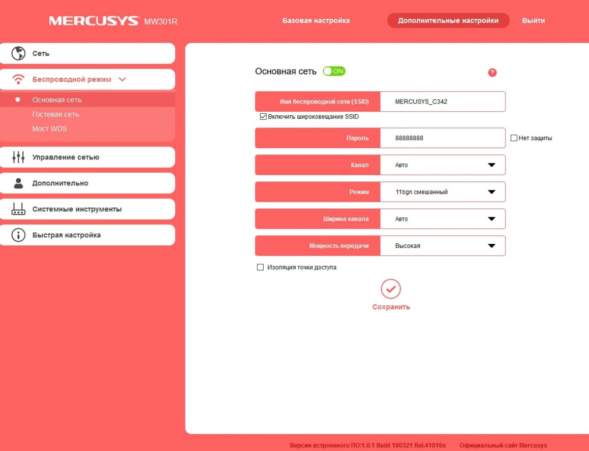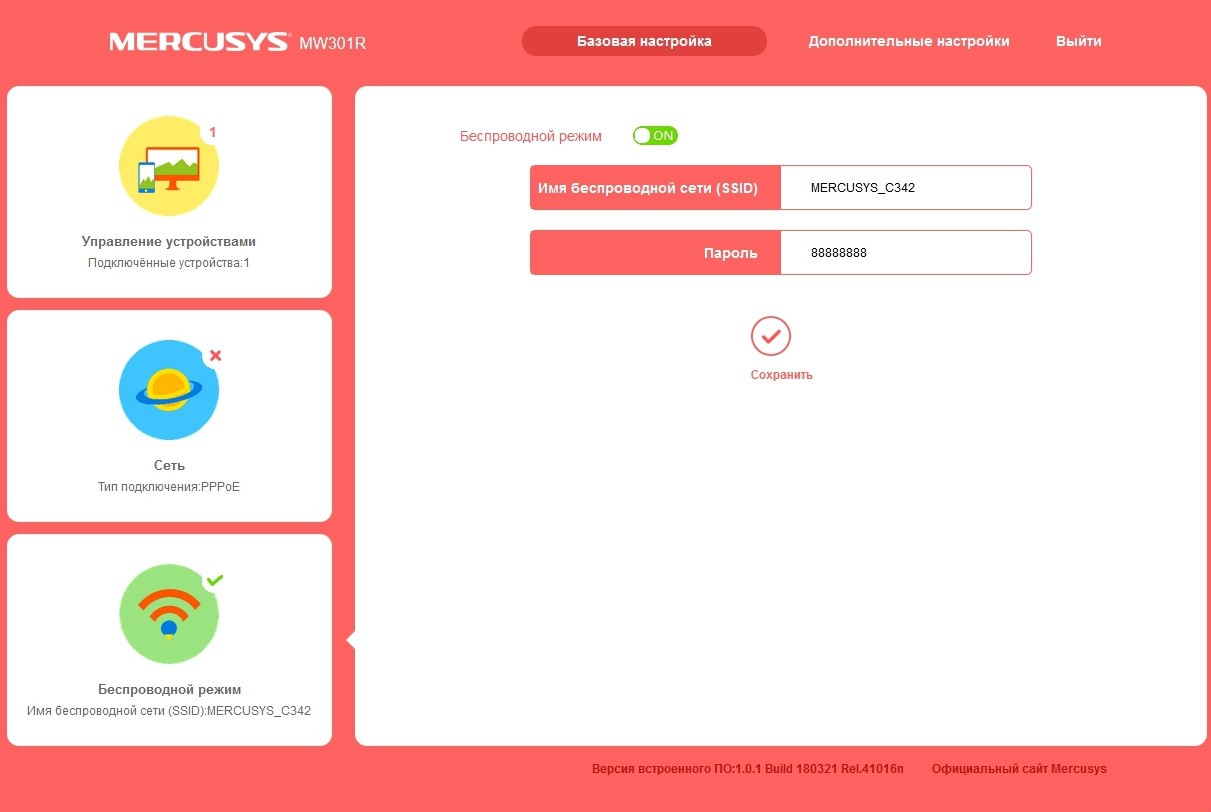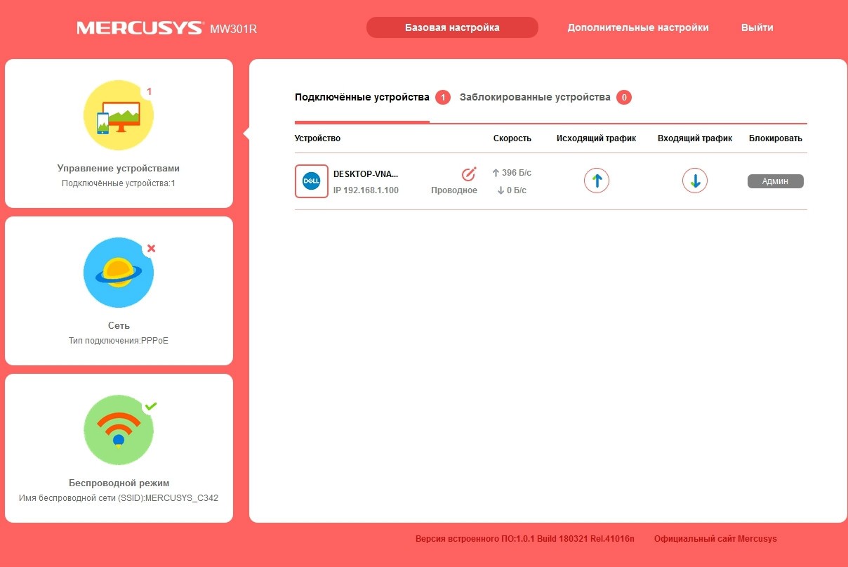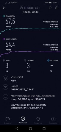 Обзор Wi-Fi роутера Mercusys MW301R: беспроводная сеть за 299 грнБеспроводная сеть Wi-Fi стала привычным делом для городской квартиры, загородного дома и офисных помещений. А вы все еще думаете, что это дорого? Тогда обзор роутера Mercusys MW301R докажет, что интернет по воздуху на скорости до 300 Мбит/с обойдется всего в 299 грн. Подробности в нашем тесте. Дизайн и корпус Корпус Mercusys MW301R полностью пластиковый. Цвет белый матовый. Излишеств нет вообще, даже от ножек отказались, чтобы упростить конструкцию и снизить ценник. При этом качество сборки не пострадало, к подгонке материалов замечаний нет. Скрипа и люфта деталей не наблюдается. Габариты - 135.77 х 93.31 х 25.85 мм. Удивитесь, но конструкция предполагает размещение на стене, на днище для этого предусмотрели два отдельных зазора. Тут же вентиляционные отверстия. Справа и слева на боках размещены по одной несъемной антенне по 5 дБи. Их положение можно менять в пределах 180 градусов. На верхней крышке расположен один светодиод, отображающий активность работы маршрутизатора. Подсветка горит в меру ярким салатовым цветом. Все порты выведены на заднюю панель: вход адаптера питания, кнопка сброса настроек Reset, один порт WAN (100 Мбит/с) и два LAN (100 Мбит/с). Возможности За раздачу Wi-Fi 802.11 b/g/n в роутере отвечает чипсет со скоростью до 300 Мбит/с в диапазоне 2,4 ГГц. Устойчивый сигнал есть только в том помещении, где установлен роутер. Если выходите за пару дверей, то связи не будет. На вход роутера подали кабель подключенный к провайдеру на скорости в 100 Мбит/с. В Speedtest смартфон Honor Play показал максимальную скорость скачивания 73,6 Мбит/с и скорость выгрузки 80,5 Мбит/с. Расстояние между устройствами 1,5 метра. Отличный результат. Видео в формате HD можно смотреть онлайн без задержек. Настроить роутер Mercusys MW301R не составило никакого труда. Несколько кликов по цепочке, которую предлагает интерактивный помощник, и сеть работает. С помощью Web-панели на русском языке дополнительно можно настроить: