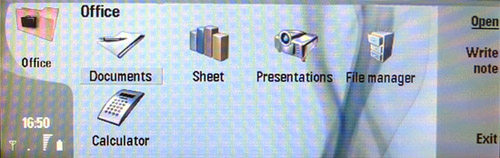 Интернет браузер работает очень хорошо, просматривает не только WAP, но и обычные HTML страницы. Соединяться с Интернетом можно через EGPRS (EDGE) или Wi-Fi. В меню Office (думаю в самом важном меню для бизнес-пользователя) можно увидеть такие программы, как Documents (аналог Microsoft Word), Sheet (аналог Microsoft Excel), Presentations (аналог Microsoft PowerPoint), File Manager (файловый менеджер) и Calculator. Благодаря большому и красочному широкоформатному дисплею, работать с офисными приложениями очень удобно.
