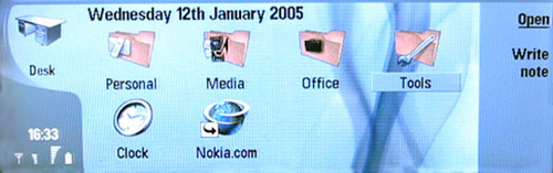 МенюГлавное меню телефона состоит из 6 пунктов: это Personal, Media, Office, Tools, Clock и ярлык для домашней страницыNokia.com. Все иконки выглядят как папки, с изображением пунктов меню. Кстати, при желании, иконки пунктов меню можно изменить, выбрав картинки из списка, или нарисовать и закачать новые самому.