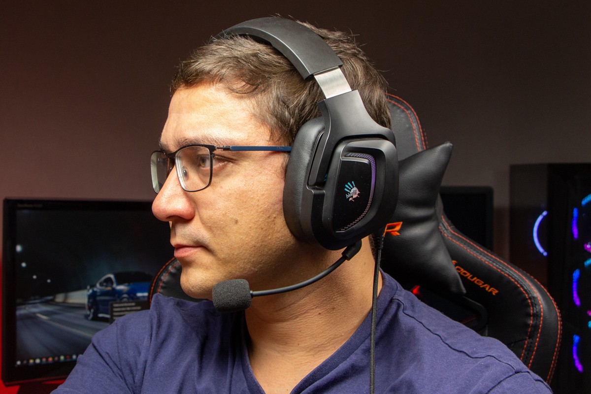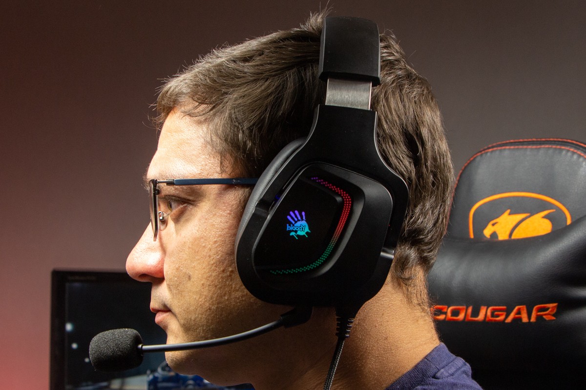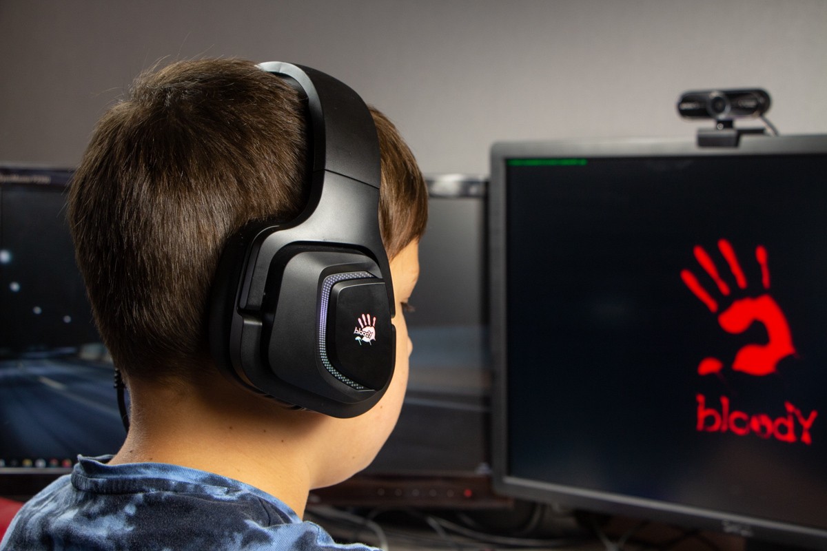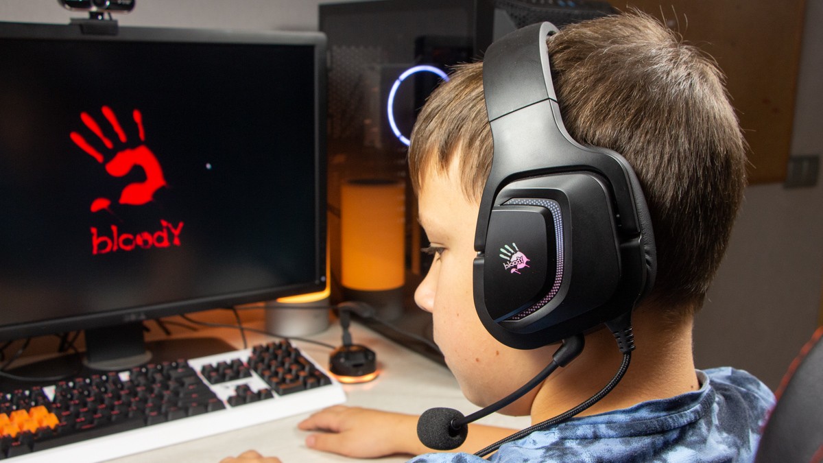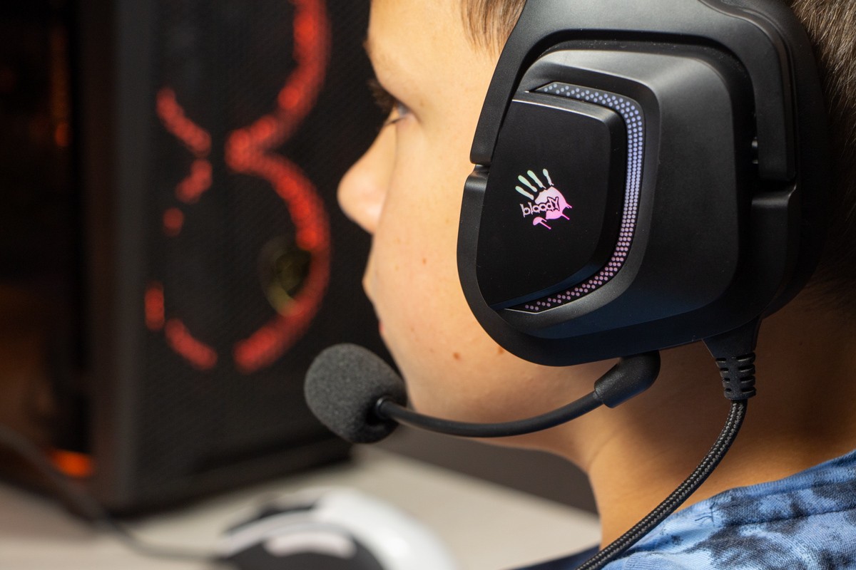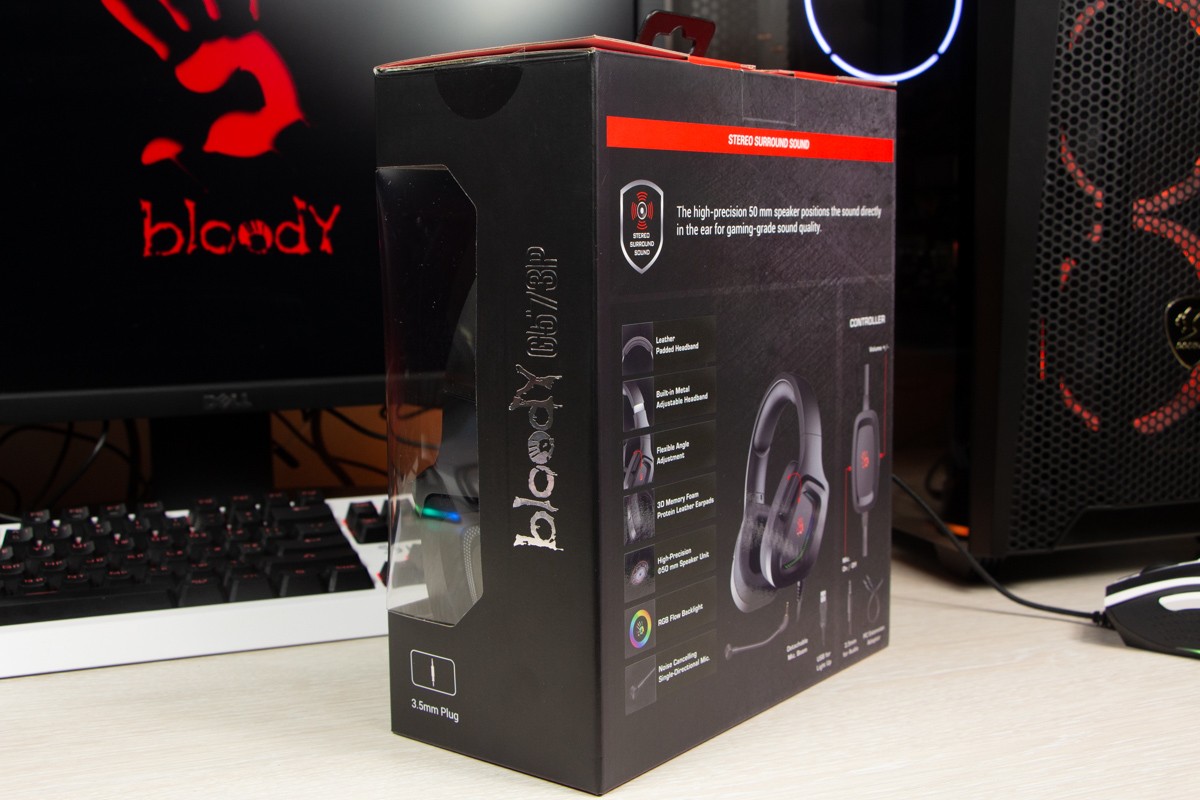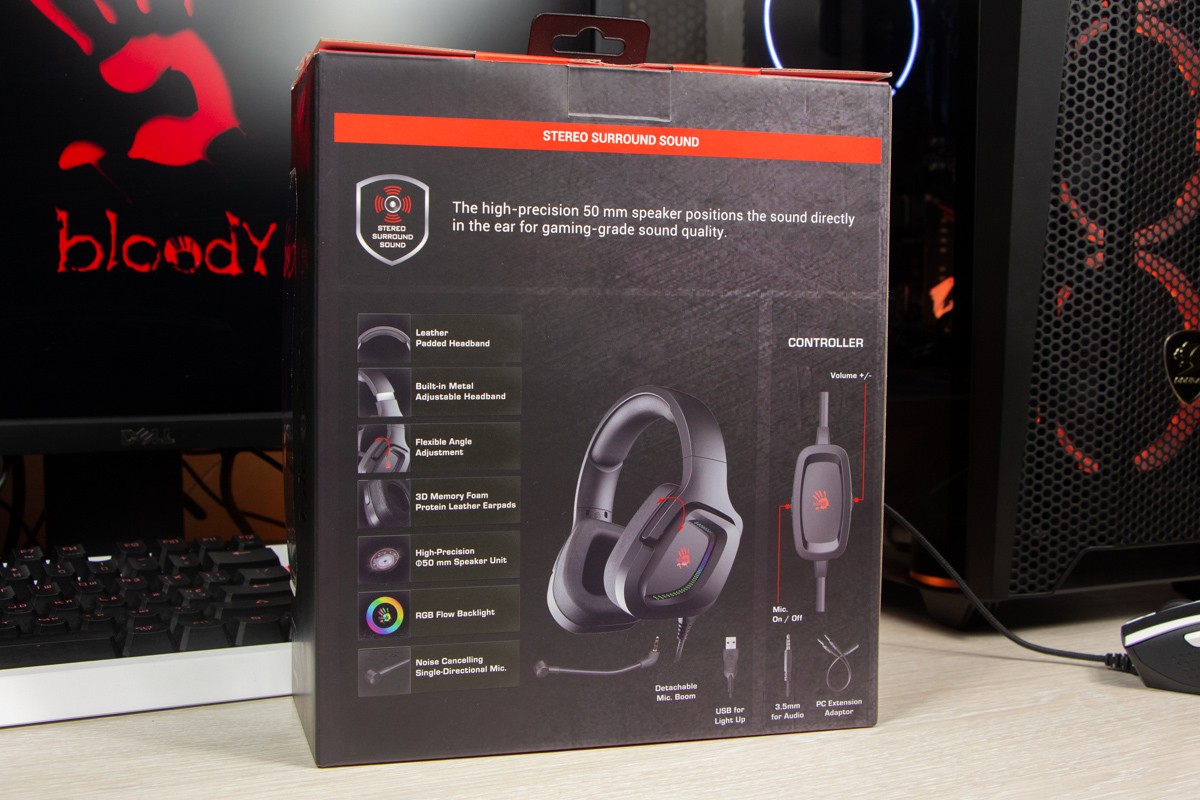 Огляд ігрових навушників A4Tech Bloody G573P: RGB підсвічування та хороший звук по прийнятній цініНаразі кожен виробник ігрових аксессуарів має у свої лінійці навушники-гарнітуру, яка доповнена RGB підсвічуванням. У A4Tech та їх ігрового бренду таких моделей багато і користувачу є з чого вибирати як по дизайну, так і по якості звучання. Останнє найбільше впливає на ціну. Як виявилось, модель Bloody G573P хоч і має невисокий цінник, але звучить добре і по-своєму цікаво. Подробиці і враження від пристрою дізнаєтесь з огляду. Комплектація Коробка з пристроєм по фірмовому яскрава та інформативна. З важливого у комплект до Bloody G573P виробник додав перехідник для підключення до ПК та мікрофон, що знімається. Дизайн і Корпус Модель G575 від Bloody по розмірах можна віднести до великих повнорозмірних ігрових навушників, які призначені для використання вдома або в офісі. Габарити 170 х 195 х 100 мм. При цьому, незважаючи на розміри, модель вийшла досить легкою - 288 г (341 г разом с кабелем і пультом). Метал в конструкції використовується в дужці, що з’єднує вуха. Пластику багато, але він якісний і товстий. Переплутати пристрій з цього огляду з навушниками від іншого виробника складно через наявність логотипів Bloody, які додаткого отримали RGB підсвічування. Якщо не підключати USB кабель, то світитись нічого не буде. Як на мене, то виробник знайшов правильний та достатній баланс між площею підсвічування та яскравістю. Додатково уточню, что підсвічування змінює свій колір в широкому діапазоні кольорів. Налаштувати його під себе можливості немає. Зон підсвічування дві. Дужка може змінювати свої розміри не більше ніж на 2,5 см з кожної сторони. Фіксація в проміжних положеннях хороша. Під дужкою передбачено ергономічний елемент, наповнений м’яким наповнювачем. Завдяки цьому навушники легко підлаштовуються під форму голови. Чашки з ободом з'єднані рухомим кріпленням. На голову пристрій сідає без нюансів, навіть якщо вона невелика. Амбушюри товсті, мають ефект пам'яті, виготовлені з екошкіри, приємні на дотик. Якщо робити проміжний висновок по корпусу, то у мене без претензій. Навушники не тиснуть ні конструкцією, ні вагою. Кабель підключення довжиною 2 метри має обплетення з тканини. На ньому розмістили пульт управління з регулятором гучності і вимикачем мікрофона. На кінці кабелю 3,5 мм аудіо конектор і USB конектор для подачі живлення на підсвітку. Звучання Основні характеристики Bloody G573P по звукуНавушники: