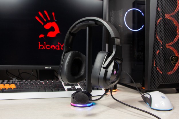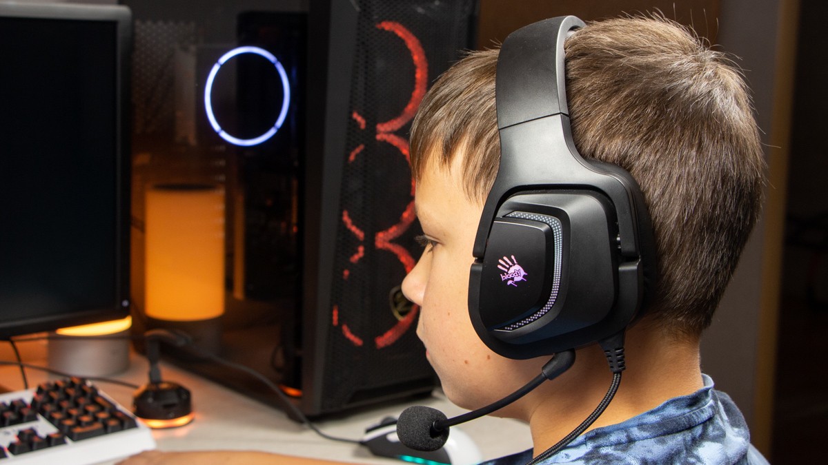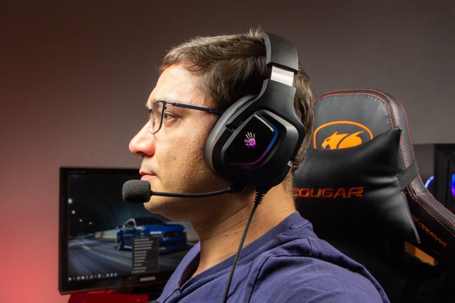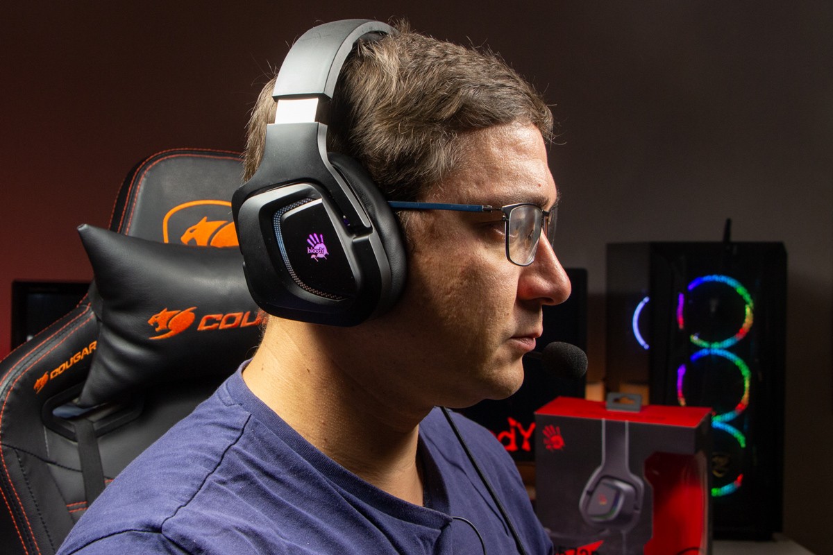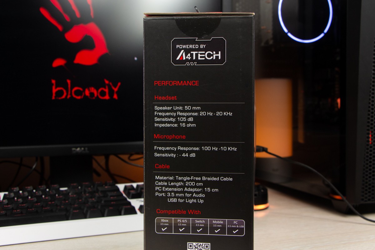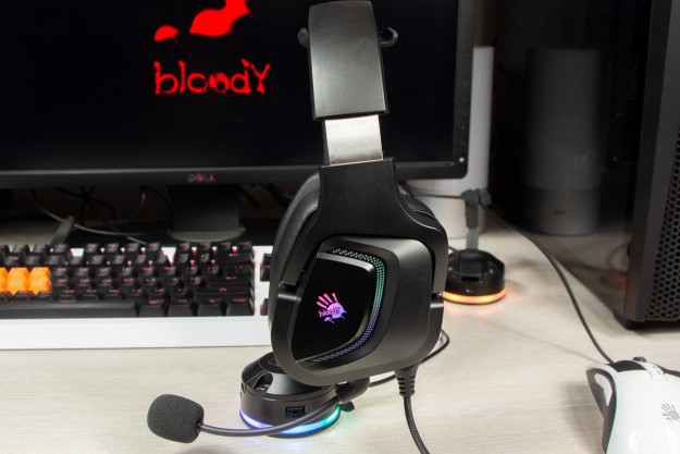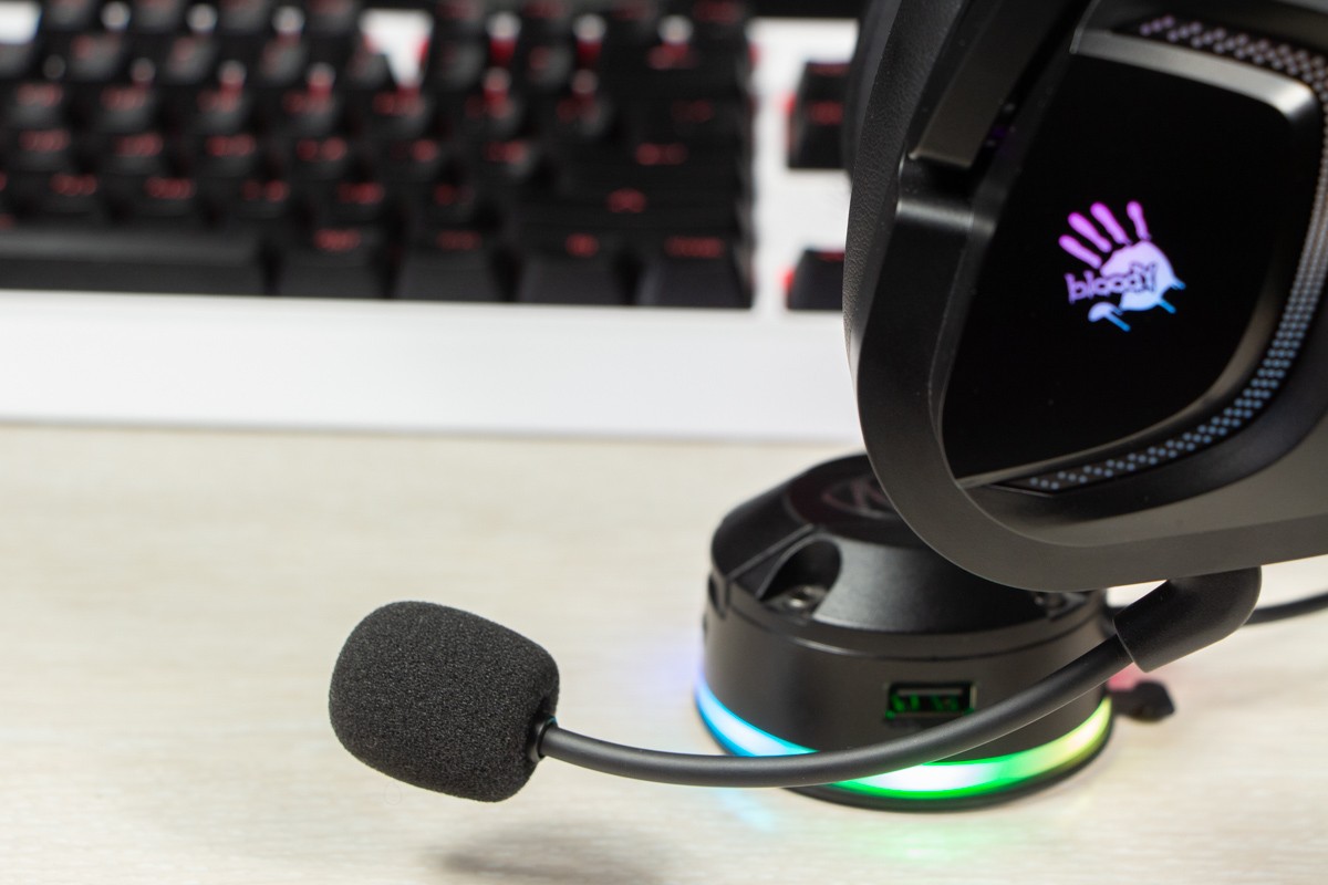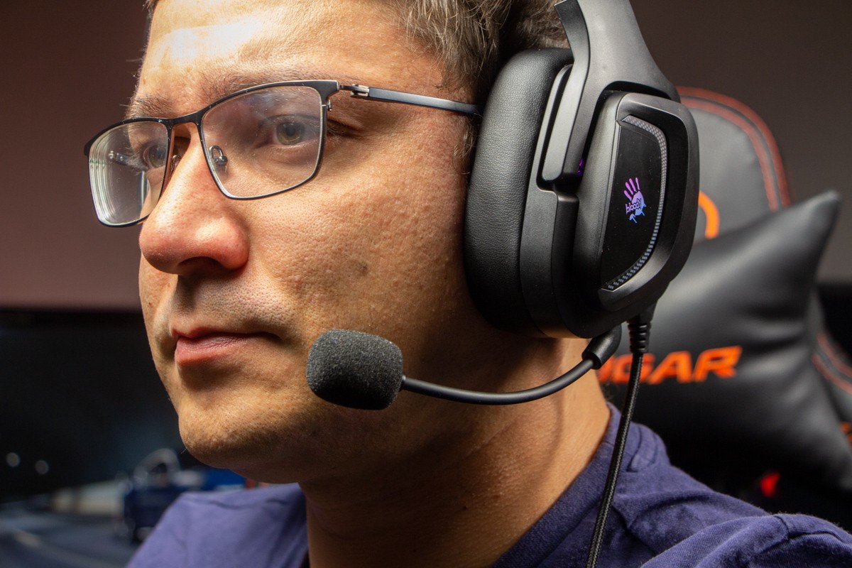 Огляд ігрових навушників A4Tech Bloody G573P: RGB підсвічування та хороший звук по прийнятній цініНаразі кожен виробник ігрових аксессуарів має у свої лінійці навушники-гарнітуру, яка доповнена RGB підсвічуванням. У A4Tech та їх ігрового бренду таких моделей багато і користувачу є з чого вибирати як по дизайну, так і по якості звучання. Останнє найбільше впливає на ціну. Як виявилось, модель Bloody G573P хоч і має невисокий цінник, але звучить добре і по-своєму цікаво. Подробиці і враження від пристрою дізнаєтесь з огляду. Комплектація Коробка з пристроєм по фірмовому яскрава та інформативна. З важливого у комплект до Bloody G573P виробник додав перехідник для підключення до ПК та мікрофон, що знімається. Дизайн і Корпус Модель G575 від Bloody по розмірах можна віднести до великих повнорозмірних ігрових навушників, які призначені для використання вдома або в офісі. Габарити 170 х 195 х 100 мм. При цьому, незважаючи на розміри, модель вийшла досить легкою - 288 г (341 г разом с кабелем і пультом). Метал в конструкції використовується в дужці, що з’єднує вуха. Пластику багато, але він якісний і товстий. Переплутати пристрій з цього огляду з навушниками від іншого виробника складно через наявність логотипів Bloody, які додаткого отримали RGB підсвічування. Якщо не підключати USB кабель, то світитись нічого не буде. Як на мене, то виробник знайшов правильний та достатній баланс між площею підсвічування та яскравістю. Додатково уточню, что підсвічування змінює свій колір в широкому діапазоні кольорів. Налаштувати його під себе можливості немає. Зон підсвічування дві. Дужка може змінювати свої розміри не більше ніж на 2,5 см з кожної сторони. Фіксація в проміжних положеннях хороша. Під дужкою передбачено ергономічний елемент, наповнений м’яким наповнювачем. Завдяки цьому навушники легко підлаштовуються під форму голови. Чашки з ободом з'єднані рухомим кріпленням. На голову пристрій сідає без нюансів, навіть якщо вона невелика. Амбушюри товсті, мають ефект пам'яті, виготовлені з екошкіри, приємні на дотик. Якщо робити проміжний висновок по корпусу, то у мене без претензій. Навушники не тиснуть ні конструкцією, ні вагою. Кабель підключення довжиною 2 метри має обплетення з тканини. На ньому розмістили пульт управління з регулятором гучності і вимикачем мікрофона. На кінці кабелю 3,5 мм аудіо конектор і USB конектор для подачі живлення на підсвітку. Звучання Основні характеристики Bloody G573P по звукуНавушники: