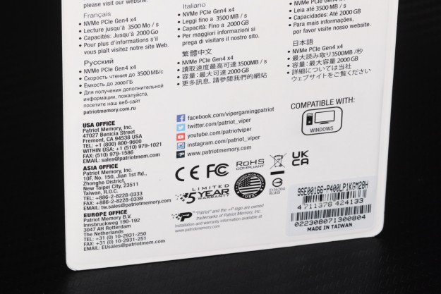 Комплектація та упаковка Постачається P400 Lite в одноразовій картонній коробці з помітним блістерним вікном-пеналом під безпосередньо розміщення носія. Так, цей формат не можна назвати в корні новим, однак свої функції він виконує абсолютно. Користувач може бути впевненим в тому, що отримає цілий та неушкоджений виріб, а ще, завдяки саме такому віконцю у всіх нас є можливість оцінити дизайн моделі, навіть без необхідності виймати її з упаковки. Вартим уваги на стінках коробки є також масив технічних даних щодо особливостей та можливостей носія . Нижче на фото деталізація. Що ж відносно комплекту поставки, тут маємо класику – виключно сам накопичувач. Крім того, вже «з коробки» на одній із його стінок не буде проблемою помітити охолоджуючий елемент. Документації тут немає, а тому ваші гарантійні права в цьому випадку зафіксовані на чеку, що свідчить за офіційність купівлі. Виробник обіцяє 5-річну гарантію, що, погодьтесь, непогано. Плата, компонентна база та якість розпайки В основі Patriot P400 Lite – текстолітова плата коричневого кольору зі стандартними типорозмірами як для свого формфактора – 80х22 мм. Товщина виробу майже 4 мм. Розпайка компонентної бази виконана на одній зі сторін плати. Поверх її маємо досить тонкий радіатор, менш як 1 мм. Останній «на борту» зафіксовано за допомогою спеціального клею. Якщо користувачі захочуть зняти поточний радіатор (а клей, на який його тут зафіксували, дозволяє це зробити) на користь більш прогресивного, мають також зважати на те, що радіатор «з коробки» - це не лише охолоджувач, але й свого роду гарантійна пломба – наслідки за пошкодження, на мій погляд, зрозумілі й без додаткових пояснень. Наявна під згаданим охолоджувачем компонента база – це чотири 256G модулі 3D NAND TLC + контролер Maxio. Нижче на фото показане відповідне маркування елементів. Для цього нам довелося частково зняти радіатор, але нагадаємо, що вам цього робити категорично не слід. Ми виконали відповідну процедуру виключно з інформаційною метою, щоб мати змогу більш всебічно вас ознайомити. Щодо якості розпайки, тут абсолютно жодних питань, причому навіть у форматі відвертої причіпки. Версії з об’ємом та сервісні функції Patriot P400 Lite у продажу доступний в наступних версіях з пам'яттю на 250 ГБ (P400LP250GM28H), 500 ГБ (P400LP500GM28H), 1ТБ (P400LP1KGM28H) та 2ТБ (P400LP2KGM28H). Всі чотири версії отримали підтримку SmartECC, а також теплове дроселювання, наскрізний захист та ін. Серед інших, також важливих особливостей моделі - наднизьке енергоспоживання. Тестовий стенд Тестування носія було виконано на ПК в закритому корпусі. Компонента база наступна: