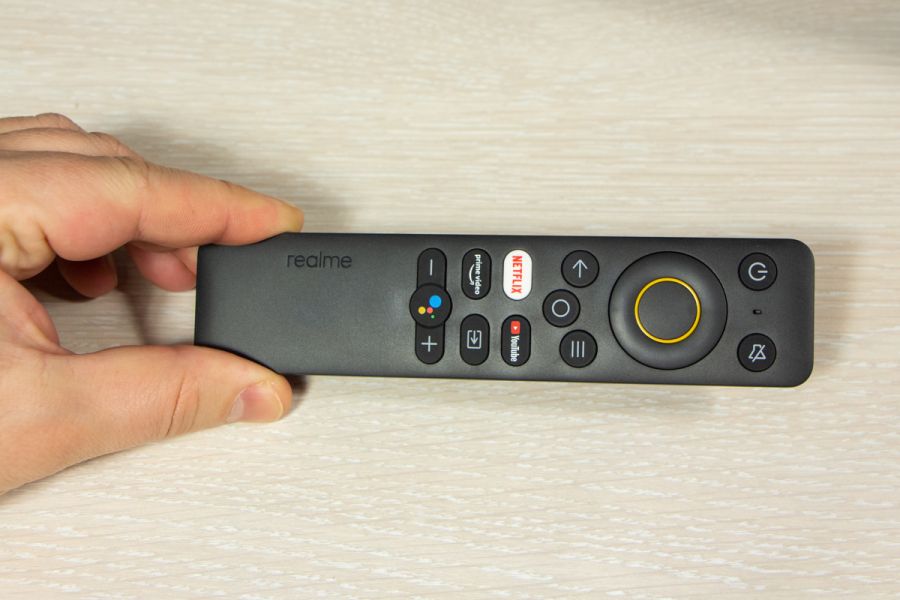 Бездротові технології представлені дводіапазонним Wi-Fi, Bluetooth 5.0 та інфрачервоним портом. Пуль на відстані в 10 м від телевізора все ще коректно відпрацьовує дії користувача. Пульт Ця деталь комплектації realme Smart TV 4K 50 заслуговує окремого згадування. І відразу ж можу його похвалити. Аксесуар легкий і його зручно тримати. Форма ергономічна, по товщині корпус потовщується ближче до нижнього. Клавіш небагато, розібратись з ними не дуже складно. Поруч із кнопкою вимкнення звуку кнопка живлення. Сильне натискання останньої дозволяє вимкнути телевізор, а просте натискання переводить телевізор у режим очікування. Між цими двома кнопками знаходиться отвір для мікрофона, за допомогою якого можна віддавати команди Google. Клавішу Google Assistant розмістили між перемикачами гучності. Пульт працює через ІЧ-порт, а також через Bluetooth. Актуально, хоч і не для всіх, що на корпусі присутні кнопки швидкого запуску додатків YouTube, Netflix та Prime Video. Всі інші 6 клавіш, включаючи колову, призначені для навігації по системі. ОС та Інтерфейс На realme Smart TV 4K 50 встановлена ОС Android TV. Програмне забезпечення стандартне для системи і до нього попередньо додали лише пару застосунків, швидкі лінки на які якраз і виведені на пульт. Google Play Store доступний без обмежень, а значить зможете достановити і файлові менеджери, і зручні браузери, і ігри. Транслювати на дисплей вміст із смартфону можна за допомогою Chromecast і AirPlay. Можу запевнити, що для Android затримок у передачі не було. Google Assistant відповідає на ваш запит через 1-2 секунди після звернення. Приблизно у 98% запитів від мене він правильно розумів прості команди. Телевізор можна використовувати з ігровими консолями, але обов’язково перемкніться в режим гри з низькою затримкою. І особливо врахуйте, що максимальна частота розгортки - 60 Гц. Пристрою потрібно приблизно 30-40 секунд для холодного завантаження. Саме за час апаратна складова на базі процесора MediaTek і графіки Mali-G52, встигає завантажити головний екран. Оперативної пам’яті – 2 ГБ, постійної – 16 ГБ. Помилок в роботі інтерфейсу мною помічено не було. Висновки На мою думку, якщо зупините свій вибір на розумному телевізорі realme 4K UHD Smart TV з діагоналлю в 50 дюймів, то у вас точно не виникне нарікань на візуальну складову, якість та гучність звучання, та те, як владо телевізор може вписатись в будь-який інтер’єр. Виробник добре проаналізував нішу та виокремив ті моменти в запиті аудиторії, такої як я, якій потрібен мінімалізм зовні, широкі можливості по смарт-функціям та велика діагональ. Але так щоб і картинка була якісною, і коштував телевізор прийнятну ціну.