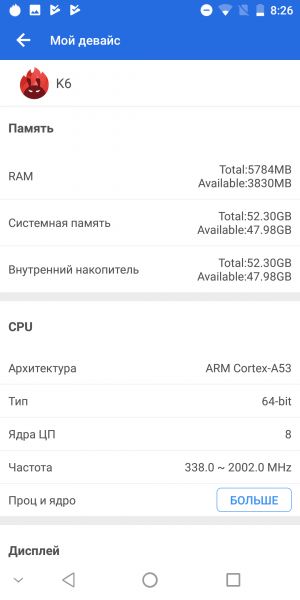 Таких параметров с легкостью хватит на 1-2 дня повседневного использования, а благодаря технологии быстрой зарядки даже 20-30 минутного подключения к сети будет достаточно, чтобы продлить жизнь своему «питомцу» еще на несколько часов активной работы. Звук Динамик один, находится в нижней части смартфона под решеточкой. Он имеет хороший запас громкости и выдает качественный звук, как при прослушивании музыки, так и при использовании громкой связи. Стереозвучания нет, как и дополнительных настроек эквалайзера, и выделенного аудиочипа. Система и безопасность Работает все под управлением системы Android 7.1.1, с фирменной оболочкой от Oukitel, знакомой нам по их К-серии устройств. Практически все русифицировано, за исключением редких пунктов меню на английском языке. Обычно они соответствуют разделам, где описываются, либо настраиваются необычные функции гаджета. Например, при помощи свайпов тремя пальцами можно делать скриншоты и открывать приложение камеры. Но, кроме уже знакомых по K8000 функций, тут есть возможность быстрой записи видео при помощи двойного нажатия на клавишу увеличения громкости (только при выключенном экране), одноручный режим, и сканирование QR-кодов без сторонних программ. Благодаря тому, что соотношение сторон дисплея составляет 18:9 можно дополнительно настроить то, какие приложения будут изначально запускаться в полноэкранном режиме, что лишь добавляет удобства. В остальном все выглядит привычным – защита информации при помощи отпечатка пальцев, либо Face Unlock. Последняя пока не достигла своего совершенства, поскольку срабатывает значительно медленнее, чем сканер, либо даже пин-код. К слову, из 10 попыток я смог только один раз разблокировать телефон при помощи камеры. Такие проблемы связаны скорее всего с недостатком освещения и необходимостью «замирать» на несколько секунд неподвижно. Потому тем, кого это не устраивает следует использовать более традиционные методы защиты. OTG работает из коробки, как и NFC, что делает этот смартфон очень достойным конкурентом не только своему модельному ряду, но и всем смартфонам этой ценовой категории. Выводы Oukitel K6 оказался действительно хорошим устройством с восьмиядерным процессором, 4 камерами и объемной батареей. Обладает целым рядом позитивных качеств, которые превозносят его над большинством соперников, несмотря на то, что работа некоторых функций могла быть реализована и лучше.