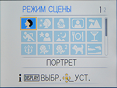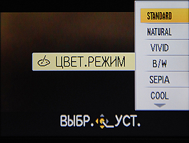 - Режим сцены. ![]() Здесь представлен набор сцен для различных жизненных ситуаций. Panasonic, как всегда, не поскупился на количество сюжетов: - Портрет, - Ровная кожа, - Трансформ. (очень увлекательный режим: что-то вроде кривого зеркала - растягивает изображение либо по вертикали, либо по горизонтали), - Автопортрет (чем отличается от портрета, так и не выяснили - если сравнивать результаты, то фактически ничем), - Пейзаж, - Спорт, - Ночной портрет, - Ночной пейзаж, - Еда, - Вечеринка, - Свечи, - Ребенок 1, - Ребенок 2, - Домашнее животное, - Закат, - Высокая чувствительность, - Скоростная съёмка (для увеличения скорости серийной съёмки переводит камеру в работу с пониженным разрешением снимка), - Импульс вспышки, - Звездное небо, - Фейерверк, - Пляж, - Снег, - Аэросъемка, - Пескоструйная обработка (эдакий художественный режим, результатом которого является кадр, выполненный в чёрно-белых тонах с повышенной зернистостью), - Фото кадр (предлагаются три рамки на выбор). -