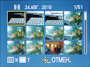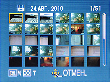 как она реализована, может стать решающим фактором. У Panasonic Lumix FP1 при записи видео возможно получение роликов следующего качества: - 4:3 VGA: 640 x 480 пикселей, 30 кадров в сек. (Motion Jpeg); - QVGA: 320 x 240 пикселей, 30 кадров в сек. (Motion JPEG); - 16:9 WVGA: 848 x 480 пикселей, 30 кадров в сек. (Motion JPEG). ![]() ![]() ![]() ![]() ![]() Во время съемки нельзя пользоваться оптическим зумом. Есть возможность записи звука моно. Режим просмотра фотографий в Panasonic Lumix DMC-FP1 реализован стандартным образом. Можно просматривать как по одной фотографии, так и группами по 12 или по 30 снимков (правда, по 30 в превью уже с трудом угадывается, что это за фотографии). Возможен «календарный» режим просмотра. Когда на экране появляется календарь, и можно посмотреть, какие фотографии сделаны в определенный день. ![]() ![]() ![]() ![]() ![]() ![]() ![]() При просмотре можно удалять фотографии по одной, группами или все сразу. Возможна