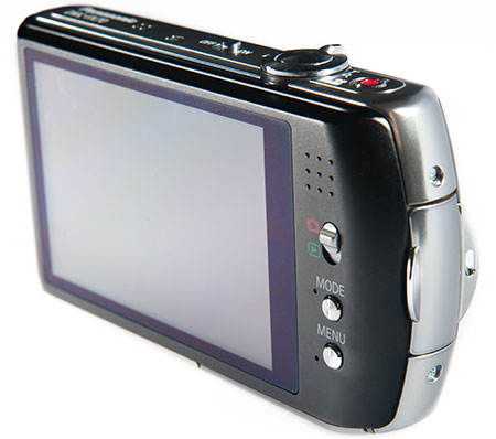дизайнерским решениям Panasonic никогда склонен не был. Вот и у Lumix FX70 вполне классические, узнаваемые черты. Фотоаппарат доступен в четырёх цветовых исполнениях: черном, золотом, розовом и серебристом. Объектив в выключенном состоянии окружён защитным кругом, который на доли миллиметра, но выше чем уровень объектива. Это не только немного защищает его, но и симпатично смотрится. ![]() Передняя и задняя палении металлические. Вставки сверху и справа сделаны из пластика. Объектив выезжающий. Вспышка встроенная. Камера достаточно большая. Весит умеренно. Как говорилось выше, Panasonic DMC-FX70 к числу маленьких камер не относится. Таскать ее в карманах летней одежды будет немного неудобно. Управлять фотоаппаратом? Умеренно удобно. В камеру встроили сенсорный экран, но при этом оставили шесть кнопок, переключателей и регуляторов (для примера, у того же Canon IXUS 300 HS тоже шесть органов управления, но у него нет сенсорного экрана; и это при более широком функционале). Кнопки включения/выключения, спуска затвора, старта записи видео и рычажок зума находятся в верхней панели фотоаппарата. ![]() ![]() ![]() Рычажок переключения режимов съемки и просмотра фотографий, кнопки Mode и Menu находятся справа от экрана. Причём «съедают» они изрядное количество места, которое могло бы быть отдано под дисплей, либо фотоаппарат мог бы быть меньше. Из-за этих кнопок, честно говоря, при взгляде на Panasonic FX70 не создается ощущения, что экран у него сенсорный.