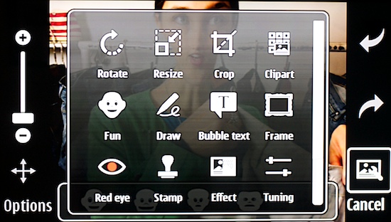 Разговор переходит к Ovi Store. Там можно покупать музыку, а вот полнометражных фильмов в отличие от iTunes Store здесь нет. Вместо этого Лукьянчиков демонстрирует, что телефон отлично справляется не только с AVI, но и с MKV, понимает кодеки MPEG, H.264 и XviD. О том, к чему он клонит, двух мнений быть не может - один демонстрируемых видеофайлов имеет приписку DVDRip. "Для нас не важно, откуда вы берёте видео - главное, чтобы телефон его воспроизводил" - говорит Лукьянчиков. Напоследок демонстрируется программа для обработки изображений.