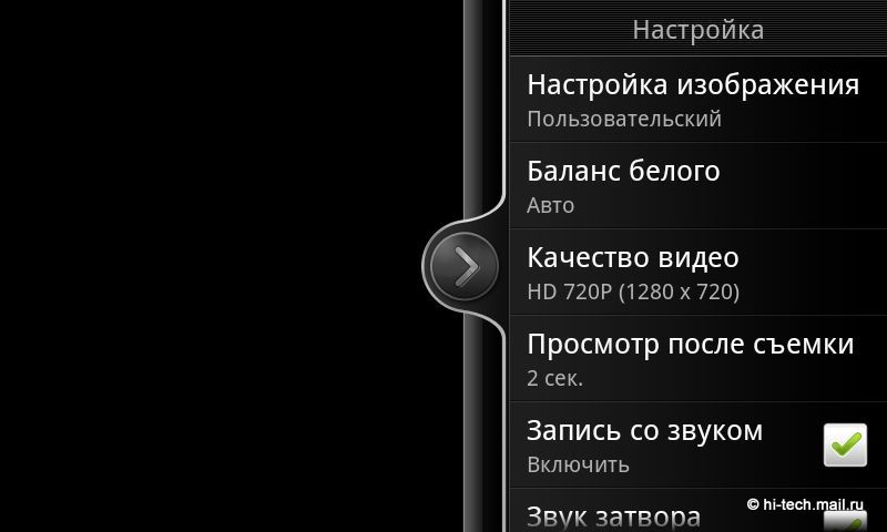 Объем ОЗУ даже больше стандартного – это 768 МБ. Флэш 4 ГБ (только 1.1 ГБ доступно пользователю), плюс карта памяти MicroSD (до 32 ГБ), в комплекте сменный носитель на 8 ГБ, кстати, производства Samsung. В целом, 8 + 1.5 ГБ тоже немного для дорогого смартфона. Камера взята из заморского аналога HTC EVO 4G – это модуль на 8 МП, такой же, как у Desire HD. Здесь двойная светодиодная вспышка и HD-видеосъемка в 720p. Есть тач-фокус, когда вы просто пальцем указываете на экране объект, на котором фокусироваться. Улучшено и качество зависи звука при видеосъемке.