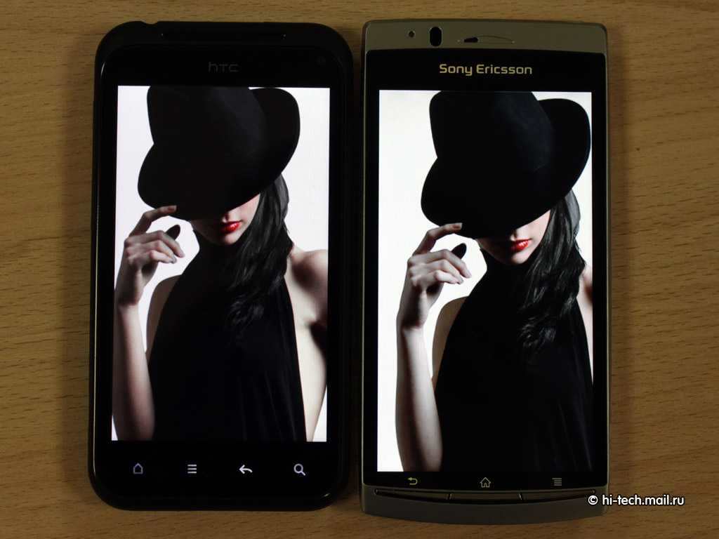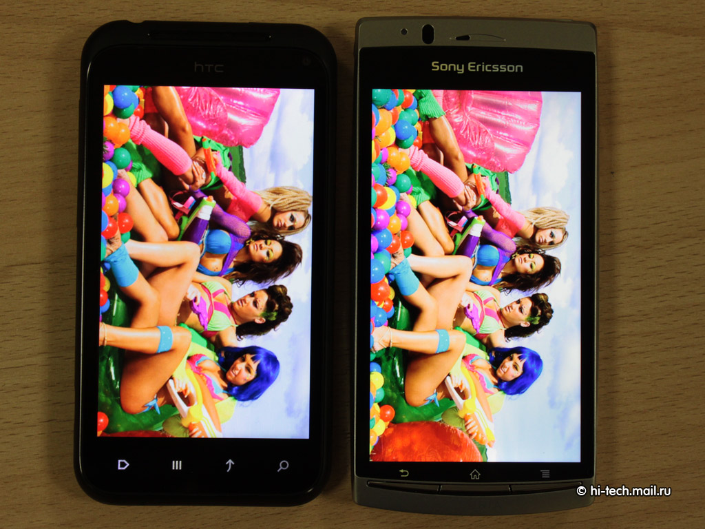 Отдельно сравним гарбариты с главным конкурентом – Sony Ericsson Xperia Arc: