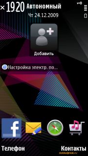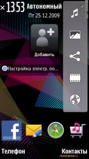 панель, это логично. Зато горизонтальная QWERTY вполне удобна, ничем не хуже 5800, плюс оформлена чуть интереснее. ![]() ![]() Появилось совмещение панели контактов и панели ярлыков на рабочем столе, это удобнее, чем выбирать одну из панелей.