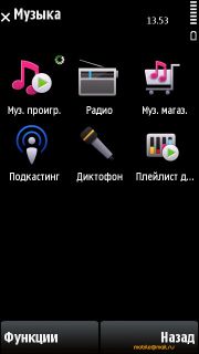 музыкальный плеер, галерея, OVI, Nokia Video centre и Интернет.