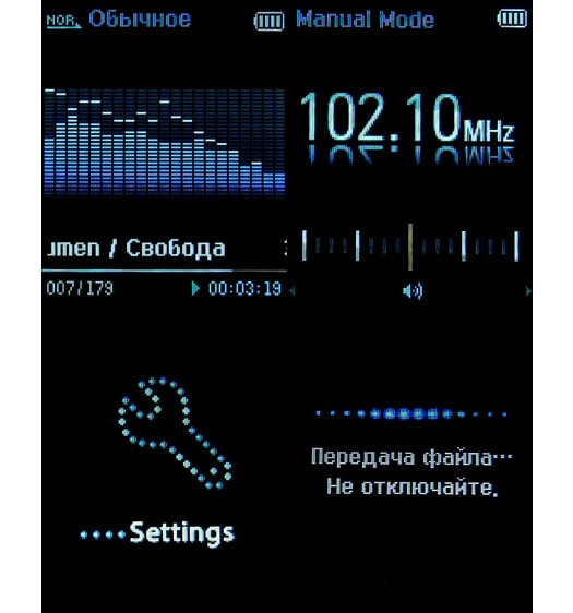 Звучит X-Metal достойно, без надрывов и явных дефектов. Фона от электроники нет. Нехватки громкости не ощущается, в инструкции заявлено 20 мВт, на сайте производителя – 2х15. Вот и кому после этого верить? Фирменные эффекты DNSe (Digital Natural Sound engine) с предустановками: Vocal, Bass Boost, 3D Sound и Concert Hall – временами могут украсить звучание треков, хотя изредка бывает и обратный эффект. Комплектные наушники, изготовлены из глянцевого черного пластика с декоративным металлизированным кружком напротив динамиков, которые закрыты металлическими сеточками. По дизайну наушники выгодно смотрятся на фоне большинства, которое вкладывают в упаковки с плеерами. По звучанию все тоже не так печально, как уже стало привычным. Заметной будет только нехватка низких частот и слабая звукоизоляция. Остальное находится в пределах нормы и в целом может устроить многих слушателей. Встроенный FM-тюнер может выделится на фоне большинства конкурентов только своим интерфейсом (точнее, одной особенностью – «отражающимися» цифрами частоты), тремя десятками ячеек для занесения радиостанций в память и отсутствием функции записи эфира. Поиск станций, уже давно ставший стандартный, трех вариантов – ручная установка частоты, полуавтоматическая (до первой найденной) и полностью автоматическая с записью в память частот первых 30 найденных. Чувствительность автоматического поиска можно установить в одно из трех положений. Качество приема хорошее, но встречается и заметно лучше, сигнал держится достаточно уверенно, но при перемещении в пространстве помехи не редкость. Новой функцией после K5 стала возможность чтения файлов TXT. Ее ценность каждый определит для себя сам, но факт, в любом случае, никуда не денется. На экране отображается заголовок, узенький вертикальный индикатор прогресса и, собственно, сам текст, с возможностью выбора одного из трех стилей отображения (голубой, с подчеркиванием и белый). Перенос по слогам отсутствует, зато есть поддержка абзацев (как ни странно, довольно редкая вещь). Последнее открытое место текстового файла запоминается, а вот закладок не предусмотрено. Музыку в фоне можно включить или выключить.
