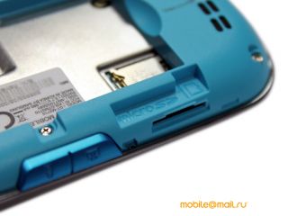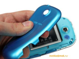 Сверху вышеупомянутый 3.5 мм джек. ![]() ![]() На лицевой панели под экраном – кроме музыкальных кнопок, три традиционные клавиши посыла и отбоя вызова и возврата, сверху – разговорный динамик, прикрытый металлической сеточкой. Полифонический динамик сзади, он очень громкий, хотя и уступает стерео-динамикам. Задняя панель крепится на нескольких защелках, очень плотно, к качеству претензий нет. Под ней есть слот для карты памяти MicroSD (горячая замена). ![]() ![]() Сравнение с S3650 Corby: ![]() Экран и управлениеЭкран аппарата не утоплен в корпус, то есть подразумевается пальцевое управление, даже стилус не предусмотрен. В Samsung M3710 экран выполнен по емкостной технологии