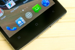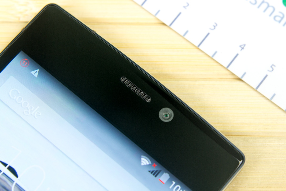 Передняя панель «разделена» классическим образом: большой дисплей, чуть выше которого глазок 5Мп фронтальной камеры, датчик освещенности/приближения и сетка разговорного динамика, а ниже три сенсорные кнопки. Центральная клавиша, а также та, что обустроена слева, обладают двойной функциональностью. К примеру, нажав и отпустив последнюю, пользователь «вызовет» редактор настройки рабочих столов, а удерживая ее, меню запущенных приложений. В свою очередь, центральная кнопка позволяет вернуться на главную страницу меню и запустить Google Now.
