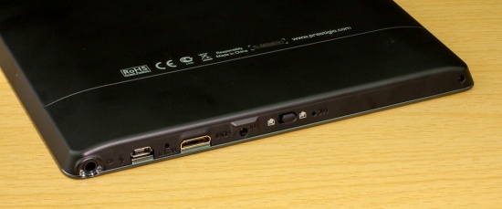 Других функциональных элементов на панели нет. Зато полно различных информационных меток: название устройства, имя и логотип компании-производителя плюс другие мелочи. Надо отдать должное – реализация неплохая – за все время, что планшет был у меня, ни одно из обозначений не стерлось и даже не начало стираться.