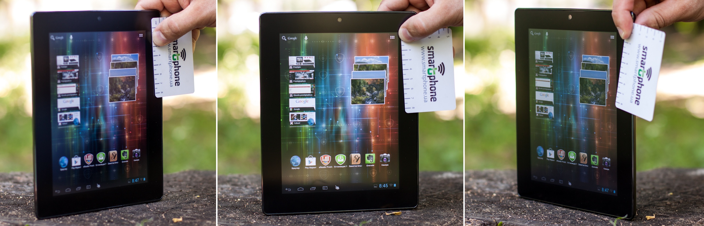 Хромированная окантовка вокруг дисплея где-то на полмиллиметра приподнята над ним. На первый взгляд, это выглядит как дополнительная защита панели от царапанья. Но я бы сказал, что это больше декор. Впрочем, даже без активного участия последней в «защитных» мероприятиях, если вы будете транспортировать планшет в чехле, за сохранность дисплея можно не беспокоиться.