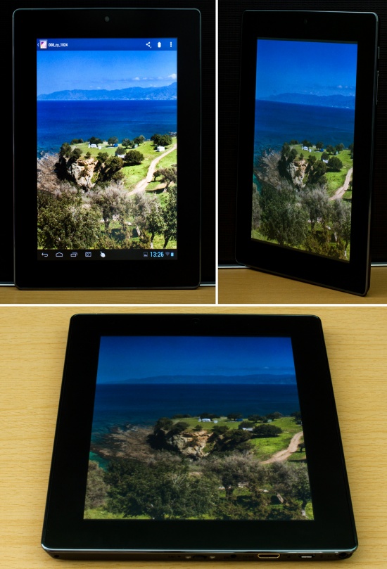 Углы обзора дисплея замечательные. «Поведение» его на солнечном свете мне также понравилось. Да, определенное вымирание цветов имеет место быть, но назвать его существенным нельзя, прикрывать панель рукой не потребуется.