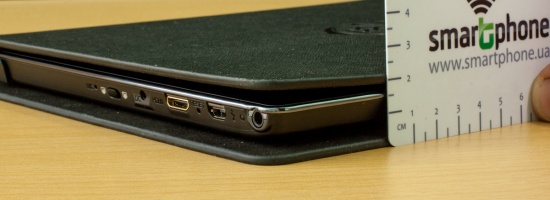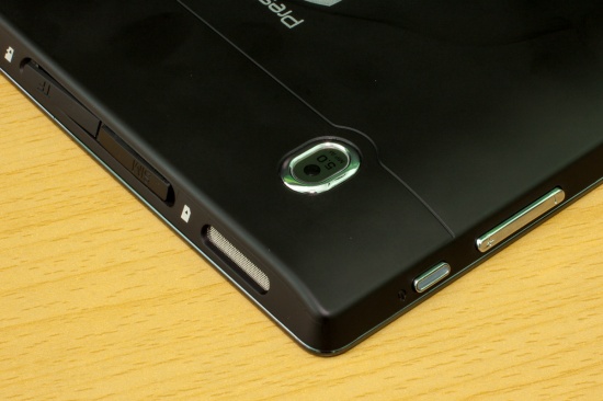Еще одна такая же прорезь расположена на нижнем торце. Помимо нее здесь же имеется вывод встроенного микрофона, разъем подключения кабеля зарядного устройства, а также порты Micro-USB и mini-HDMI, клавиша RESET и классический 3,5 мм разъем. Кроме того, сюда же вынесена кнопка, при помощи которой пользователь может заблокировать ввод информации пальцем в пользу стилуса. Переключение ее же упомянутую блокировку снимает. Как по мне, решение удобное – в определенных документах информацию лучше вводить при помощи стилуса, тогда как пальцем легко допустить ошибки. Кстати, помимо кнопки на нижнем торце, есть еще и сенсорная с аналогичной функциональной особенностью. Она вынесена на один уровень с традиционными сенсорными клавишами чуть ниже дисплея.