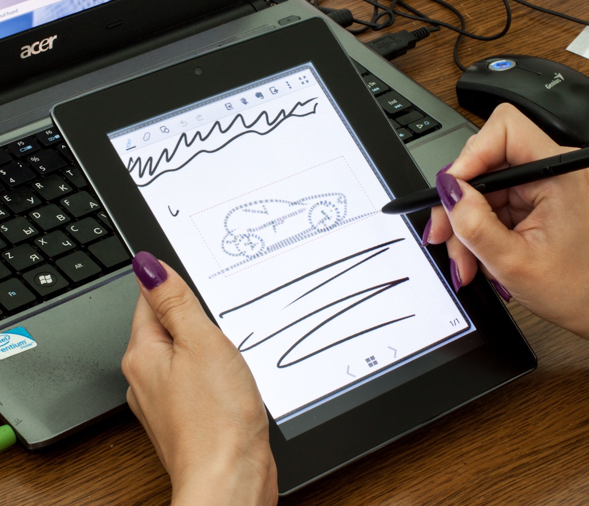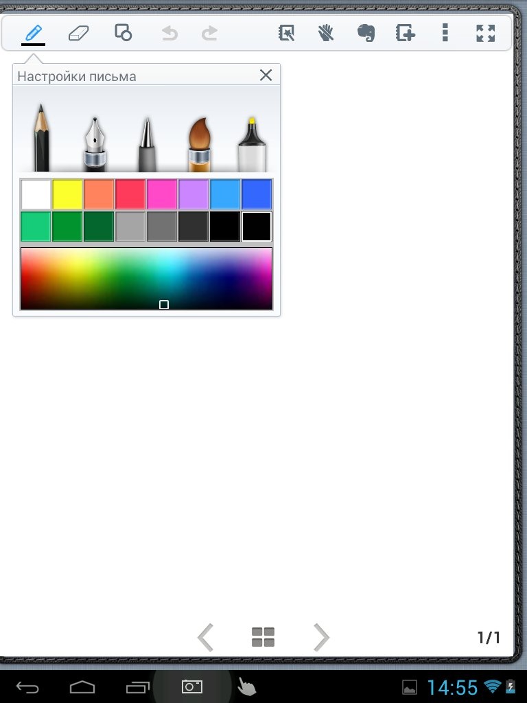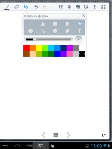 Здесь все функциональные элементы расположены на верхней строчке. Крайнее левое окошко позволяет выбрать инструмент, посредством которого вы будете вводить данные либо же, проще говоря, писать, а также необходимый цвет чернила.