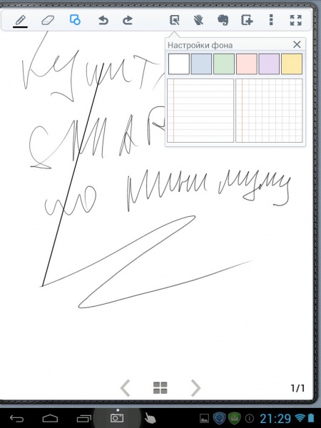 В самом редакторе «Заметки Smart Note» посредством стилуса пользователь может делать все, что ему заблагорассудится: рисовать заметки, переходить по меню, выделять отдельную часть написанного/нарисованного и переносить на другую часть страницы, а также вытирать написанное. Очень, кстати, любопытно последнее. Здесь достаточно уже одного нажатия обратной стороной ручки, чтобы стереть все данные, введенные за последнее прикосновение пера.
