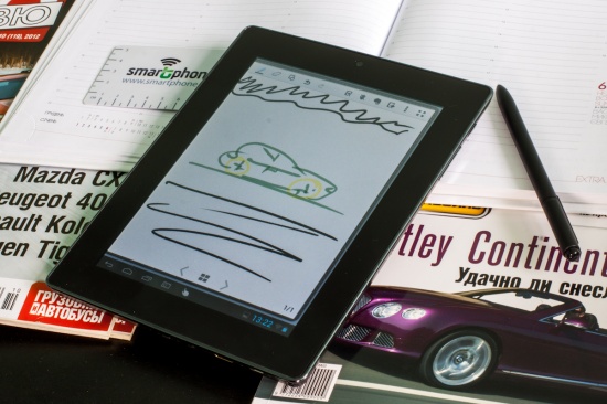 Несколько слов о возможностях самого стилуса. Прежде всего, стоит отметить, что помимо полноценной навигации по меню на прикосновение стилусом реагируют даже сенсорные кнопки, расположенные чуть ниже дисплея. Кстати, скорее всего, потому производитель вынес их на дисплейную часть планшета, а не ниже.