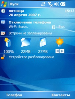 Внешний вид, конструкцияПо своему внешнему виду RoverPC G5 - типичный коммуникатор или КПК, только чуть меньше полноразмерных наладонников. Наша модификация полностью серебристого цвета, за исключением чёрной полосы на боковых панелях по периметру всего корпуса. В продаже бывают и модели с чёрной вставкой на лицевой панели, так что можно выбрать цветовое решение себе по вкусу. ![]() Внимательные любители гаджетов, наверняка, заметят, что по габаритам, расположению органов управления и характерным металлическим сеточкам RoverPC G5 напоминает миниатюрный коммуникатор O2 XDA Atom компании Quanta - модель годичной давности. Однако дизайн нашего гостя заметно отличается от предшественника, да и процессор существенно мощнее. Однако OEM-производителем G5, очевидно, является всё та же Quanta. Качество используемой пластмассы - не самое выдающееся: многие "обычные" мобильники среднего класса могут похвастать гораздо более дорогим пластиком. Впрочем, как ни странно, подавляющее большинство коммуникаторов довольствуется корпусами из подобного материала. К тому же, качество сборки весома достойное, никаких люфтов замечено не было, и лишь слегка похрустывает при разговоре крышка батарейного отсека. Большую часть лицевой панели занимает 2,7-дюймовый сенсорный экран с обычным для коммуникаторов разрешением 320 х 240 точек. Хотя дисплей на самом деле очень невелик, на небольшом G5 он смотрится весьма внушительно. Над дисплеем расположена решётка громкоговорителя, под который также прячутся светодиодные индикаторы: красный светится постоянно до конца зарядки устройства, зелёный и голубой мигают при работе с беспроводными соединениями. Под дисплеем установлены четыре кнопки и четырёхпозиционная качающаяся клавиша с центральной кнопкой подтверждения. Классическое решение, подтвердившее свою состоятельность. Верхние аппаратные кнопки вызывают меню "Пуск" операционной системы и почтовый клиент, нижние отвечают за приём звонка/отправку вызова и отбой. "Почтовую" кнопку можно при желании перепрограммировать. Все клавиши имеют небольшой ход, нажимаются мягко и чётко. ![]() На задней панели, уже по традиции современных смартфонов, расположились глазок двухмегапиксельной фотокамеры, "зеркальце-шляпка" для съёмки автопортретов и светодиодная подсветка, призванная заменить вспышку, ниже - крышка батарейного отсека. Под аккумулятором находится разъём для SIM-карты. Крышка отсека, на наш взгляд, слишком тонкая, вследствие чего похрустывает во время разговора по телефону, когда сжимаешь аппарат в руке. Здесь, по-видимому, требовалось объединить крышку с аккумуляторной батареей, придав ей дополнительную жёсткость, как любят делать южнокорейские производители мобильников. Практика доказала, что в результате получается простая и надёжная конструкция. ![]() Верхнюю панель занимают крохотная кнопка включения (она же выключает и включает экран при кратковременном нажатии), расположенная почти заподлицо с корпусом, а также слот для флэш-карт miniSD. По какой-то непостижимой причине этот довольно широкий слот не защищён никакой заглушкой, и через него в корпусе коммуникатора непременно будет скапливаться пыль. Мягко говоря, странное конструктивное решение. На левом углу верней панели в малозаметном отверстии прячется стило. Оно настолько хорошо замаскировано в чёрной встав