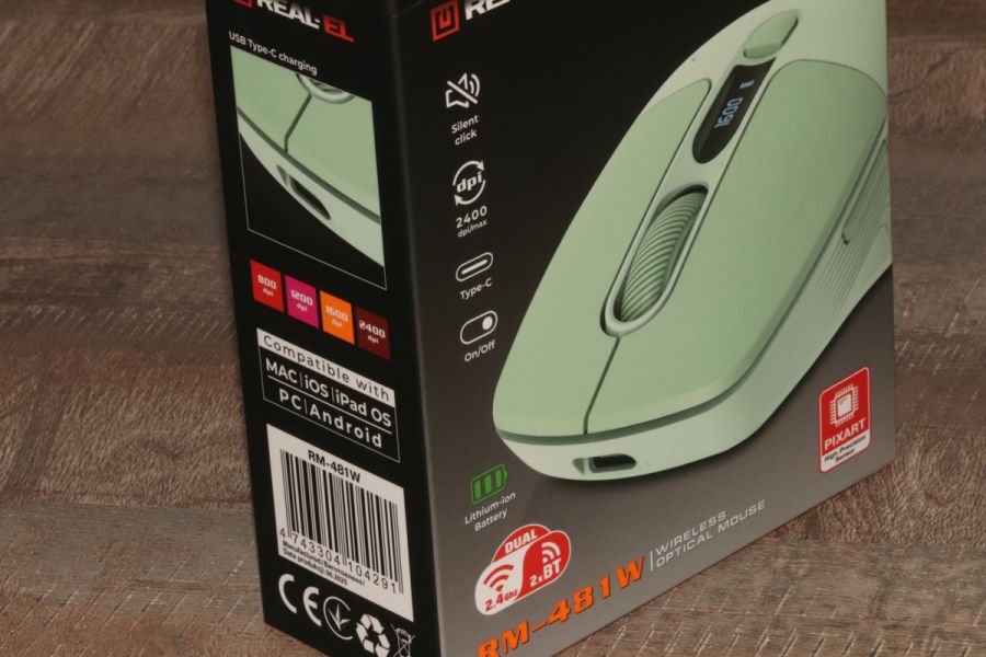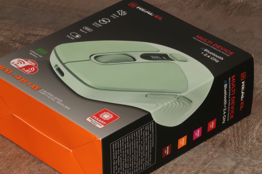 Огляд REAL-EL RM-481W – бездротова мишка з дисплеєм та потрійним підключеннямВ естонський REAL-EL вміють робити цікаві мишки. І в цьому плані RM-481W – далеко не перший бездротовий маніпулятор, про який хочеться розповісти читачам. Чому? Ну дивіться – у нас компактна строго симетрична мишка, з вбудованим акумулятором, можливістю підключення до трьох пристроїв з подальшим простим перемиканням, а ще тихими кнопками правого та лівого натиску + вбудованим дисплеєм. Цікаво? От і нам теж. Тому саме час поглянути на новинку детальніше. Технічні характеристики