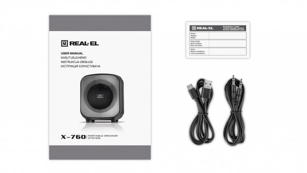 Пульт дистанційного керування не передбачений особливостями даної моделі. На перший погляд, здається, що він тут не буде скільки-небудь зайвим. Проте, згодом розумієш, що REAL-EL X-760 – це саме ручний бумбокс з комфортною навіть для підлітка вагою. Особисто ми в редакції аніскільки не сумніваємося в тому, що цей формат вам обов’язково сподобається. Стосовно використаних в корпусі матеріалів, мова головним чином за пластик ABS. Останній є достатньо стійким причому як до незначних взаємодій з довкіллям, так і до помітних - висновки за результатами місячного тестування моделі з тісним сусідством з купою іншої тестової та особистої електроніки.