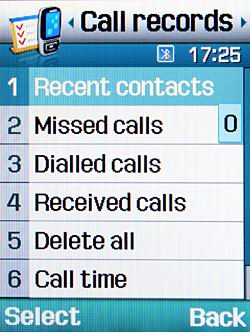 Чисто визуально аналогов данного меню у Samsung еще не было. Иконки полностью перерисованы, за счет увеличившегося разрешения они стали намного симпатичнее. Сохранилась анимация. А изюминкой этого аппарата стало представление в виде анимированных flash-роликов. При наведении на иконку она значительно увеличивается в размере, при этом одновременно пользователь наслаждается «мультфильмом». Думаю, что такая находка в самое ближайшее время будет внедрена и в другие модели. Параллельно с таким шоу сохранилось и обычное - в виде традиционной матрицы 3х3. Первым пунктом традиционно идет журнал звонков.