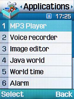 В этот пункт меню входят: мр3-плеер, диктофон, фоторедактор, Java-приложения, мировое время, будильник, калькулятор, конвертор величин, таймер, секундомер, меню SIM-карты оператора. МР3-проигрыватель.