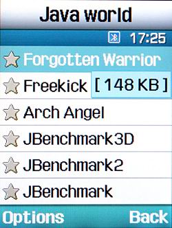 В телефоне установлены три уже известных игры. Идут они довольно шустро. Но с Java у Samsung получился очевидный прокол. Флагман линейки не поддерживает 3D приложений. В чем дело – в версии прошивки, или в самой конструкции – осталось неясным. Вероятной причиной может быть и увеличившееся разрешение экрана. В любом случае 3D-бенчмарк запускаться не пожелал. И опять проблемы с загрузкой Java с карты памяти и через кабель. В явном виде она не реализована. Но возможность использования сервисных кодов несколько сглаживает эту проблему. Под Java в телефоне выделено 4 Мб памяти, которая динамически не перераспределяется. Мировое время – установка времени для двух часовых поясов. Все обычно. Сигнал, он же будильник. В телефоне три независимых будильника с индивидуальными настройками. В качестве мелодий, помимо встроенных, могут использоваться мр3-файлы. Калькулятор, конвертор величин таймер обратного отсчета и секундомер явных улучшений не получили. Несколько перерисован интерфейс. Остальные функции обычны. Отдельный пункт меню посвящен браузеру.