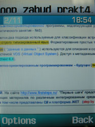 Ну и, наконец, про экран. Особенно много говорить об экране не хочется, потому что его лучше один раз увидеть, чтобы понять - D600 стоит купить уже только ради него. К сожалению, фотографии не могут передать той яркости, контрастности и потрясающей цветовой насыщенности, которой обладает этот экран с невероятным разрешением 240x320 пикселей при физических размерах 31х41 мм. Меню и приложенияОдна из причин, по которой D600 наверняка придется по вкусу деловому человеку, - это встроенное приложение Picsel File Viewer. Оно позволяет производить удивительную для телефона вещь - открывать файлы формата MS Office (то есть Word, Excel и PowerPoint), Adobe Acrobat, а также те, что имеют расширения WMF, TXT, PNG, Jpg, GIF, BMP и AGIF. При этом важно запомнить, что приложение только открывает и показывает документы безо всякой возможности редактирования. Но считать это недостатком ни в коем случае нельзя: во-первых, благодаря этому файлы открываются едва ли не быстрее, чем на компьютере, а во-вторых, даже в теории возможность редактирования подобных документов на телефоне выглядит как страшная профанация.