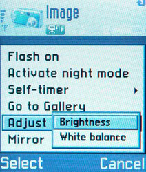 На раскрытие телефона звуковое сопровождение поставить нельзя. Камера1,3-мегапиксельная матрица позволяет делать снимки с максимальным разрешением 1280х1024. Снимки получается весьма качественные. Вспышка «спасает» на расстоянии 1-1,5 м, не более. Размер фотографий составляет около 300 Кб при максимальном разрешении. С минимальным (176x144) разрешением камера работает быстрее, однако приложение медлительно само по себе (даже запуск отнимает секунды четыре), после сохранения каждой фотографии процесс запуска повторяется. Этот недостаток с лихвой компенсируется функциональностью. Можно включить ночной режим, вспышку, автотаймер (5, 10 или 15 с), режим зеркального отображения. Кроме стандартных настроек (разрешение, путь сохранения, имя, качество), можно настроить режим освещения (матричный или одноточечный), чувствительность (ISO 100, 200, 400, auto), яркость и баланс белого.
