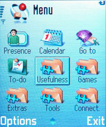 Как театр начинается с вешалки, так и знакомство с мобильным телефоном начинается с заставки. Именно здесь и начали проявляться красочные «мультики», заставляющие задуматься о позиционировании аппарата. Выглядит он вполне стильно и аккуратно, даже идеально для бизнес-модели и в какой-то степени имиджево. Впрочем, кроме заставок на включение и выключение, только скринмэйты непонятного происхождения напоминали о тяге Samsung к анимации всего и вся. Меню прорисовано очень грамотно и вполне серьезно. Шрифты выглядят ровными, легко читаются, хотя это заслуга скорее самой платформы Series 60. Каких-либо радикальных отличий от стандартной поставки Series 60 2.1 нет, поэтому не имеет смысла подробно рассматривать меню, лучше сделать акцент на наиболее интересных приложениях.