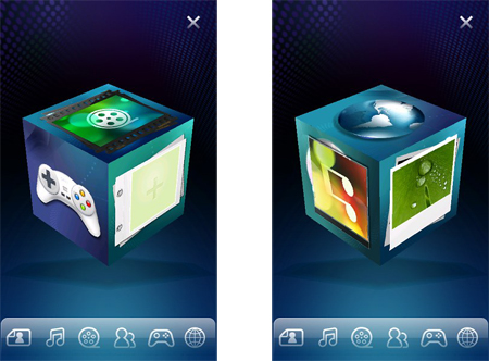 Центральная кубическая кнопка - своеобразный символ того, что в Samsung Omnia II используется Cube-меню. Оно представляет собой трехмерный куб, на 6 гранях которого разместились 5 мультимедийных и одна общеполезная функция - камера, фотоальбом, музыкальный плеер, видеоплеер, игры или веб-браузер и выход в главное меню. ![]()