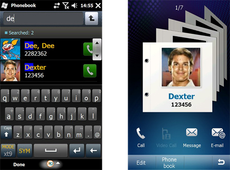 лабораторию. Телефонная книга Даже в те дни, когда телефонная книга WinMobile была одним из самых непритязательных внешне приложений, она со своим заданием справлялась на все сто. Такие сильные стороны этого приложения, как неограниченные размеры и очень простая синхронизация с ПК остались еще с тех времен, когда коммуникаторы были простыми КПК (с историей этих устройств вы можете ознакомиться в нашей статье). ![]()