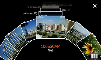 скроллинга. Есть функция поиска файла по имени. Галерея изображений Изображения, сохраненные на Samsung Omnia II, отображаются с помощью удобной и продуманной утилиты под нехитрым названием «Фотоальбом». Снимки можно просматривать в режиме слайд-шоу, предварительно настроить эффекты перелистывания, направление и длительность показа. Обычный скроллинг по галерее с помощью касаний никаких затруднений не вызвал. ![]()