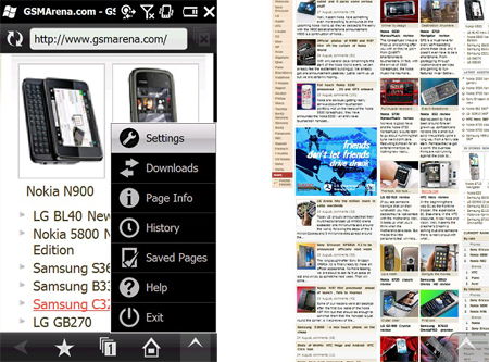 Mobile, хотелось бы, чтобы такая возможность в Samsung Omnia II была реализована на более высоком уровне. Браузеры. Производители решили снабдить девайс сразу двумя браузерами - свежей версией Explorer Mobile и Opera Mobile v9.5. Обновленный Opera Mobile великолепно оптимизирован под сенсорное управление - явно сказалось влияние браузера Safari, установленного на iPhone (читать обзор). Скроллинг, масштабирование страниц - все очень быстрое, доcтупно зуммирование одним касанием. При коротком двойном нажатии увеличивается именно та часть экрана, на которую вы нажали. ![]()