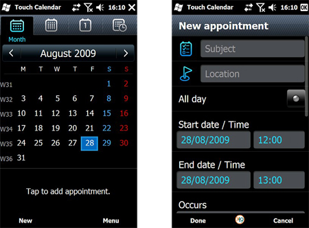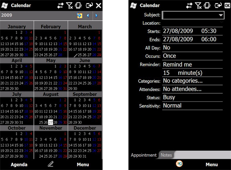 вручную. Органайзер Календарь Windows Mobile в Samsung Omnia II практически не видоизменили. Он предлагает посматривать планы за день, неделю, месяц и даже за год или же создать общий список планов. Информацию из органайзера легко копировать, удалять и вставлять. ![]()