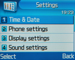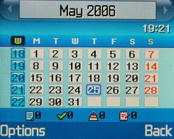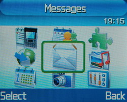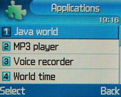 Меню обычное для телефонов данного производителя, переделано в соответствии с повернутым на бок дисплеем и представляет обычную матрицу 3х3, подпункты которой отображаются в виде списков. Постараемся выделить лишь наиболее интересные и важные функции, т.к. сама платформа уже не раз была описана.