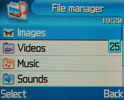 Файловый менеджер заменяет раздел мультимедиа. Все файлы расположены в следующих папках: картинки, видео, музыка, звуки, другие.