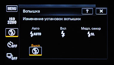 кардридер. На экране, не залезая в меню, можно - управлять работой вспышки; - управлять работой автозапуска; - задействовать серийную съемку; - выбрать режим съёмки; - перейти в режим просмотра фотографий; - перейти в главное меню. ![]()