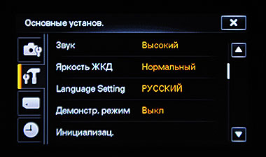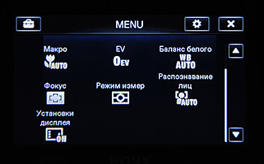 Нажав на кнопку, выполненную в виде «чемоданчика», вы попадете в меню более тонких настроек. Там можно выбрать формат видеосъемки, включение-выключение автофокуса, отрегулировать яркость дисплея и некоторые другие функции. ![]() ![]() ![]() ![]() ![]() ![]() ![]()